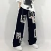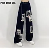 Goth Grunge – jean noir Emo Egirl Hip Hop, Streetwear, Punk, pantalon imprimé Patchwork, jambes larges, surdimensionné, cyberbaggy des années 90