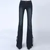 Jean déchiré en denim pour femmes, pantalon de printemps et d'automne, avec trous fendus, à la mode, en dentelle, croisé, 2022