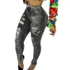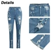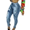 Jean déchiré bleu pour femmes, pantalon crayon déchiré, pleine longueur, Sexy, taille moyenne, en Denim, extensible, slim