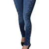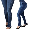 Jean Slim en Denim pour femmes, pantalon crayon, Push Up, taille haute, extensible, bleu, rétro, perlé, Slim, à la mode