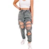 Jean déchiré gris pour femme y2k, pantalon droit, taille haute, Streetwear, troué, Denim