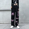 Jean taille haute pour femmes, pantalon Long droit, décontracté, noir, mode américaine, tendance Hip Hop