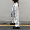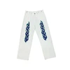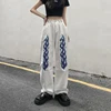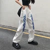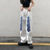 Jean taille haute en Denim blanc pour femmes, pantalon Long et droit, imprimé de flamme, personnalité Hip Hop, mode décontractée, jambes larges