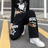 Pantalon en jean pour femme, Streetwear ample, décontracté, ajustable, taille haute, imprimé étoiles, météores, Y2K