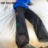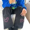 Jean droit à grandes poches et imprimé cœur pour fille, cyber y2k, pantalon Hippie, Harajuku, jambes larges, Emo, Hip Hop, Kawaii, Baggy, Denim
