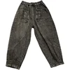 Jean sarouel décontracté pour femmes, taille extensible, délavé, ample, quotidien, noir, Denim urbain