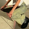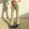 Auyiudar – pantalon en jean style rétro Y2k, style fée Grunge, taille basse, fendu, urbain, Streetwear, Goblincore, pantalon à bottes