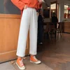 Jean en Denim pour femmes, pantalon large et droit, taille haute élastique, décontracté, ample, Streetwear coréen, mode printemps 2022