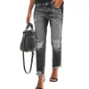 Jean déchiré et délavé pour femme, pantalon en Denim bleu, coupe mi taille, Style urbain, nouvelle collection automne