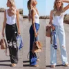 Pantalon en Denim bleu délavé pour femmes, taille haute, Baggy décontracté en coton, jambes larges, Streetwear