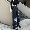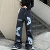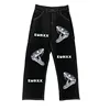 Jean Baggy noir délavé pour hommes et femmes, Streetwear de personnalité Vintage américain, tête de serpent, lettre imprimée, pantalon Long