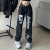 WeiYao Goth – jean coupe ample pour femme, pantalon en Denim, coupe droite, taille moyenne, Style urbain et esthétique des années 90