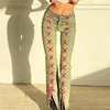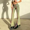 Jean Skinny évasé pour femmes, pantalon en Denim fendu, taille basse, extensible, large, à lacets, esthétique, Streetwear Grunge, Y2K