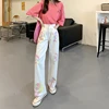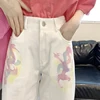 Jean ample à jambes larges pour femme, vêtement d'extérieur décontracté, blanc, en Denim, coton, à la mode, grande taille