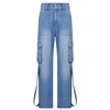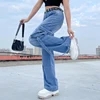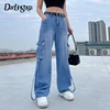 Darlingaga – pantalon Cargo bleu droit pour femme, Baggy en jean avec poches et ruban, décontracté, surdimensionné, vêtements coréens
