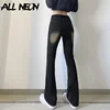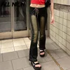 ALLNeon – jean rétro à lacets, Streetwear des années 90, taille basse, pantalon en Denim noir, pleine longueur esthétique, pantalon e girl pour femmes, Slim