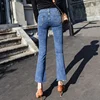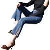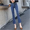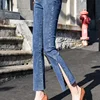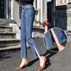 Jeans en Denim taille haute pour Femme, Style coréen, taille haute, élastique, fendu sur le côté, sequins, longueur cheville, collection printemps été 3009