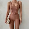 Nouveau costume de sport 2 pièces Sexy sans manches, haut court moulant + taille haute, fente latérale, costume élégant décontracté