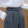Pantalon à jambes larges pour femmes, couleur unie, noir, décontracté, taille haute, boutons amples, Long, nouvelle collection printemps été 2020