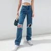 Jean déchiré pour femme, Streetwear, taille haute, Baggy, jambes droites, décontracté, couleur unie, pantalon en Denim, Boyfriend