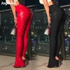 Pantalon en Faux cuir pour femmes, Legging de Club, taille haute, moulant, froncé, ourlet fendu