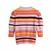 XNWMNZ Za – pull vintage rayé en tricot pour femme, col rond, manches courtes bouffantes, chic, à la mode, automne, 2020