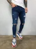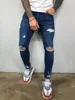 Jean déchiré au genou pour hommes, Slim, noir, bleu, Style High Street, élasticité, décontracté, pantalon de motard, 4XL, nouvelle collection