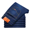 Jean droit pour hommes, coupe Slim, Style Business, mode classique, bleu, noir, pantalon en denim extensible, décontracté