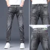 Chao – pantalon en Denim noir pour hommes, broderie, tendance, Version coréenne, élastique, ample, décontracté, droit, vêtements de marque