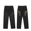 Jean surdimensionné rétro Harajuku pour hommes, pantalon droit noir avec broderie pistolet et étoiles, style Hip Hop, décontracté, Denim, 2021