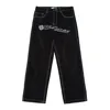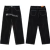 Pantalon en jean noir pour hommes, Streetwear noir surdimensionné en Denim, avec lettres brodées de crâne, Punk rétro, Hip Hop, collection 2021