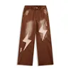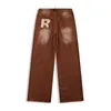 Jean surdimensionné brodé pour homme et femme, pantalon élégant en Denim, style Hip Hop, Vintage, droit, marron, 2021