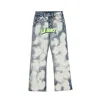 Jean Baggy droit délavé Vintage pour hommes, pantalon élégant en Denim, style Hip Hop, avec lettres brodées, teinture par nouage, 2021