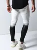 Jean Slim Stretch déchiré pour homme, pantalon en Denim crayon, Streetwear, dégradé blanc noir, jogging