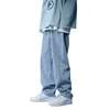 Jean en Denim pour homme, couleur unie, coupe droite, sarouel, blanc/noir, style coréen, pantalon Streetwear, décontracté, été