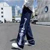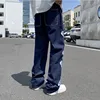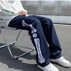 Y2k – jean squelette bleu pour homme, pantalon en Denim, délavé, décontracté, à jambes droites, Vintage, avec fermeture éclair, 2021