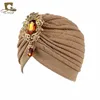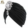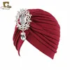 Turban de luxe en coton épais pour femmes, avec pendentif en diamant argenté, hijab musulman, enveloppe de tête