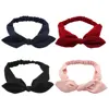 Bandeau oreilles de lapin en Polyester uni pour femmes, bandeau élastique à nœud, accessoires pour cheveux