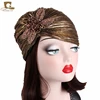 Turban métallique brillant à volants pour femmes, casquette de mariage avec fleur perlée, indien, chapeau, nouvelle collection