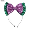 Bandeau de sirène Double couche à gros nœud à paillettes pour filles, couvre chef de Style métallique à paillettes, accessoires de cheveux pour enfants Festival