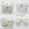 Nœuds de cheveux en perles blanches, 1 pièce, avec pinces à cheveux pour filles, couches de strass scintillants, nœuds centraux, épingles à cheveux, accessoires