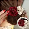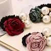 Bandeau de cheveux élastique en Satin pour femmes, 1 pièce, ruban de cheveux, fleur de Rose, bandeau de perles, porte queue de cheval, couvre chef