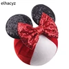 Bandeau en velours pour filles, nœud de cheveux, oreilles de souris scintillantes, couvre chef tendance pour enfants, 1 pièce, 5 pouces