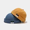 Hommes Femmes Rétro Dôme Melon Brimless Bonnet Bonnet Unisexe Skullcap Marin Coton Mécanicien À La Mode Couleur Élastique Panneaux Docker Chapeau Homme