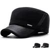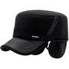 Chapeau épais en laine et coton PU pour homme et femme, couvre chef de Couple, oreillettes d'extérieur, noir, automne hiver