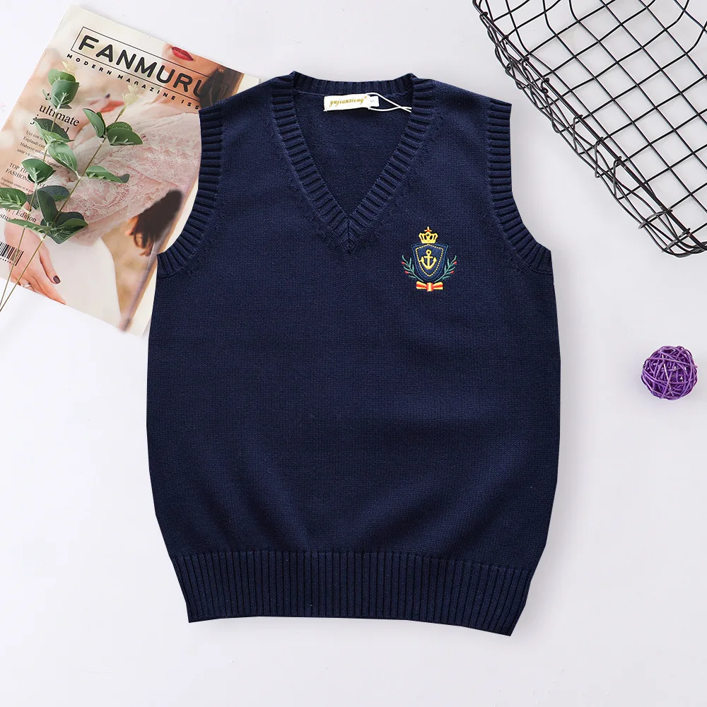 Gilet sans manches en tricot brodé pour filles et garçons, uniforme scolaire JK, gilet d'hiver pour collégiens, nouvelle collection