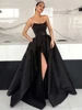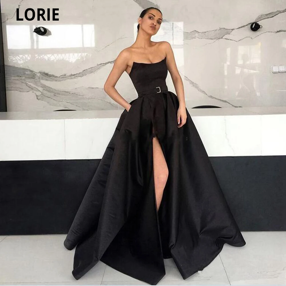 LORIE – robe de soirée noire avec ceinture, tenue de bal Simple et formelle, bon marché, avec fente haute, robe de célébrité pour Cocktail, grande taille