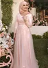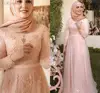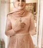 YiMinpwp – robe de soirée de standing pour femmes musulmanes, rose, col rond, manches longues, longueur au sol, avec des Appliques