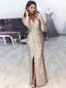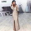 LORIE robe de soirée élégante, robe princesse Champagne, col en v, fente latérale, manches longues, 2020