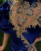LORIE – robe de soirée de forme sirène, en velours perlé, avec des Appliques dorées, bleu